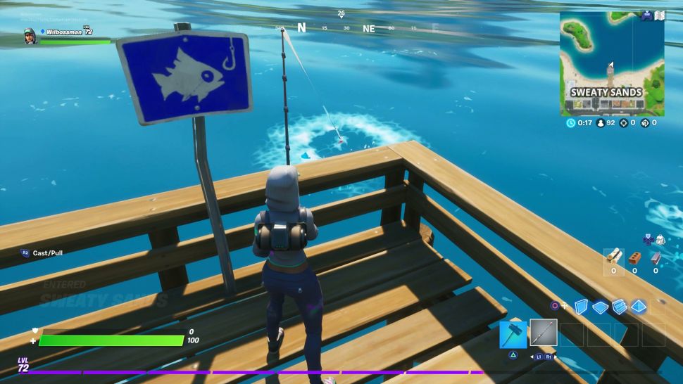 Necesitas conseguir diez peces para entregar a la facción elegida, y si aún no lo sabías, hay varias formas de adquirirlos. Puedes atraparlos en los lugares de pesca (los círculos blancos que aparecen en el agua) con una caña de pescar, un arpón o incluso un arma explosiva. Lejos de los lugares de pesca, si arrojas una caña de pescar en el agua hasta que te muerdan, es probable que atrapes pequeños alevines. También puede obtener pescado de las cajas de hielo de Fortnite, si ve alguno de ellos.
